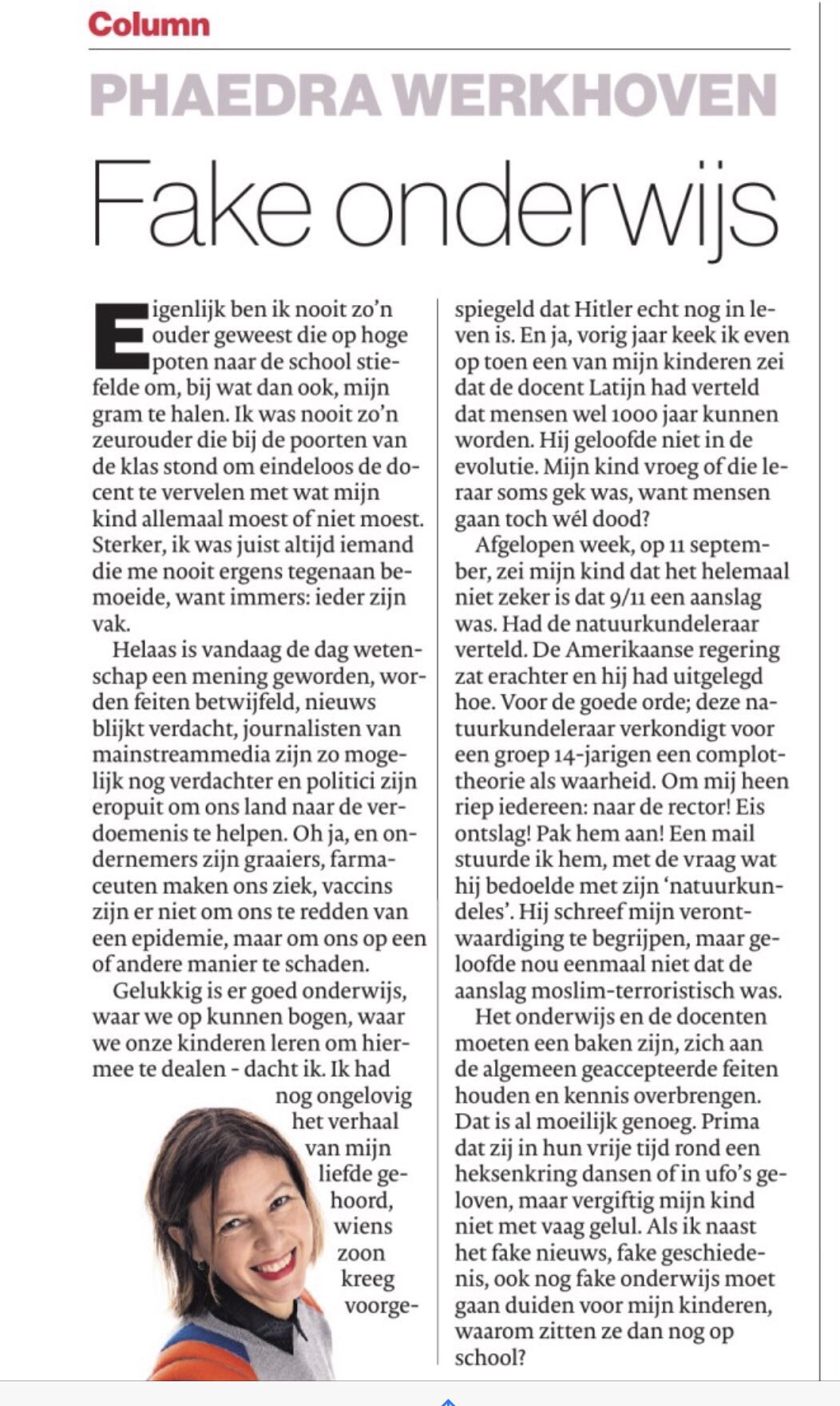 Tja, de complotgelovigen zijn onvermoeibaar, als je zo de reacties op de column over de natuurkundedocent ziet.